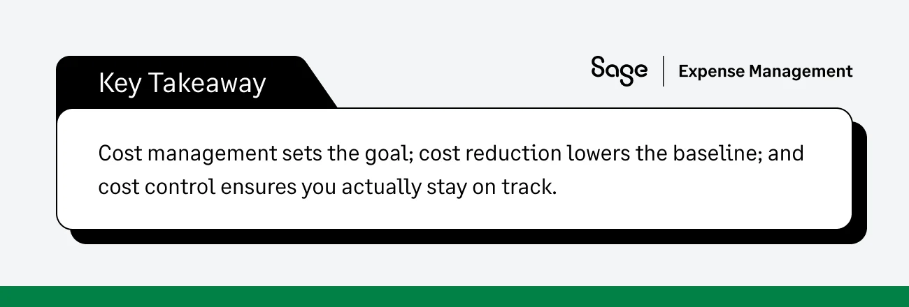- Cost management: The broad, "big picture" strategy. It covers the entire lifecycle of business spending - from initial planning and resource estimation to long-term budgeting and financing. It’s the roadmap for your company’s financial future.