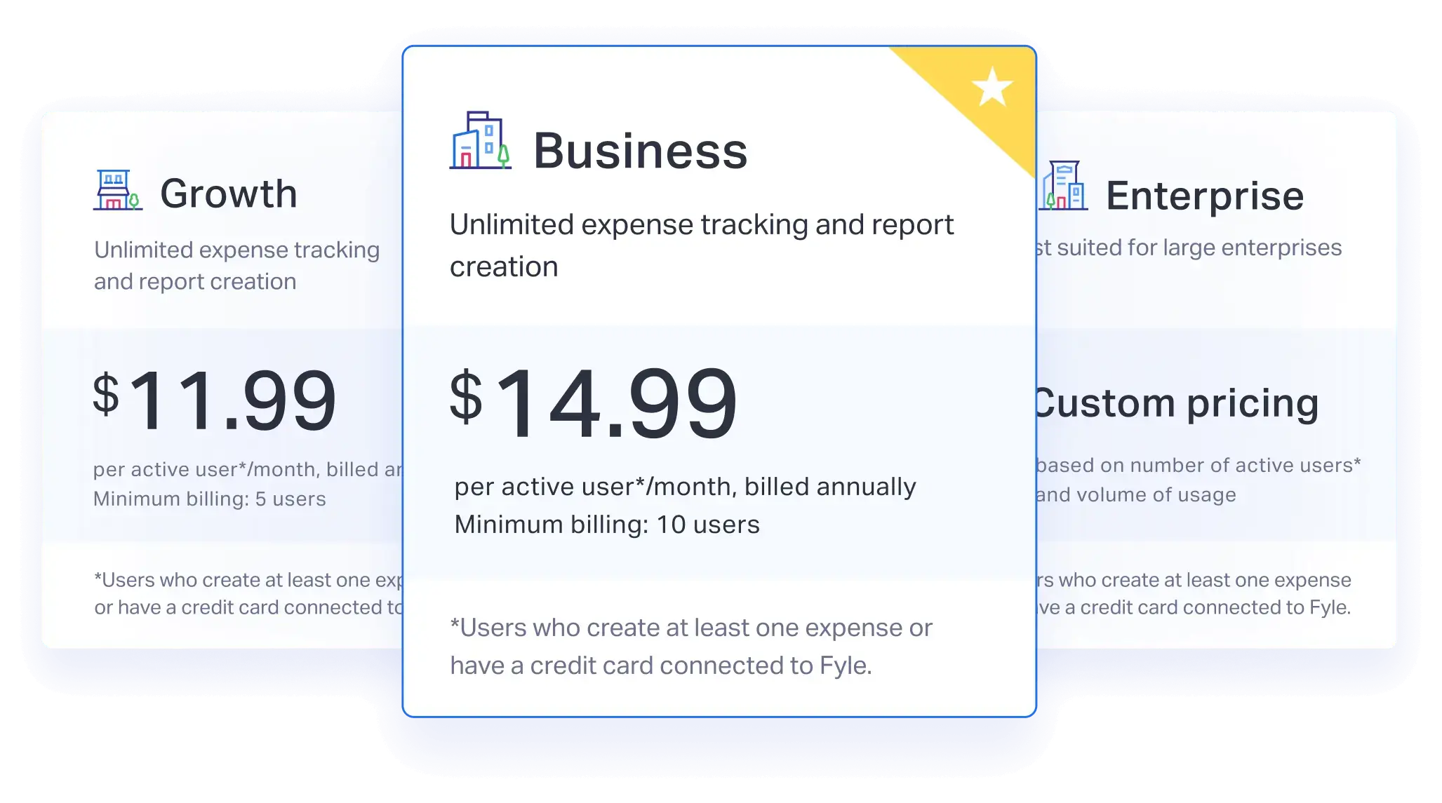 Fyle offers a transparent pricing model based on "active users," those who submit at least one expense report per month. There are no lock-in contracts, and you can easily export your data anytime if you choose to opt-out.