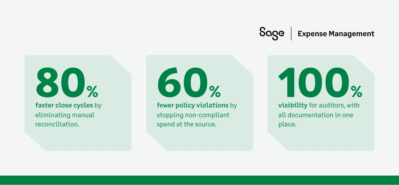 Sage Expense Management moves your process from detective work to automated enforcement. It acts as a 24/7 compliance guardrail that ensures every single transaction is audit-ready before it ever reaches your desk.