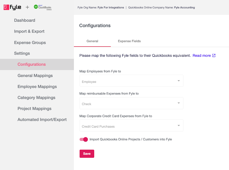 Auto import customers/projects from QBO into Sage Expense Management