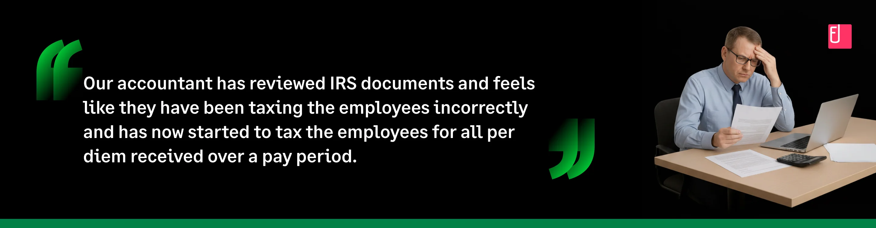 A per diem allowance is only non-taxable if it is part of an accountable plan that requires employees to account for their expenses within a reasonable period of time. While this is a facts-and-circumstances test, the IRS considers 60 days after an expense is paid or incurred to be a safe harbor for timely accounting.