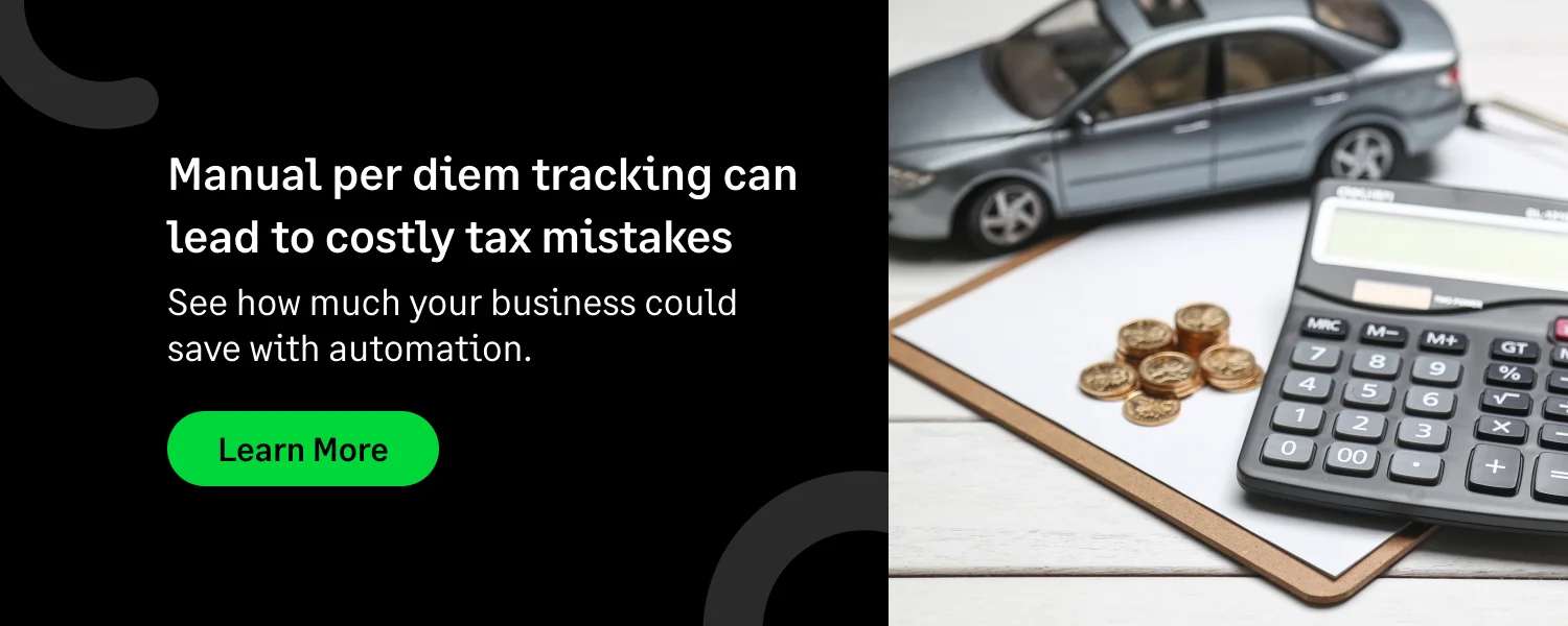 Manually managing per diem is a complex and risky task. For businesses with multiple employees traveling to different locations, manually looking up the correct rates, applying transition rules, and ensuring everyone meets the reasonable period of time deadline can be a massive administrative burden. This process is prone to human error and can lead to costly compliance risks and tax liabilities.